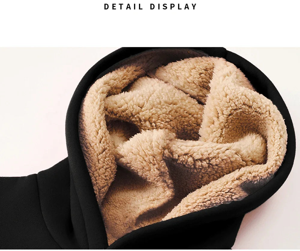 Winter Thicken Hoodies Men's Lambswool Warm Hooded Pullover Unisex Long Sleeve Sweatshirts Streetwear Unisex Casual Black Tops
