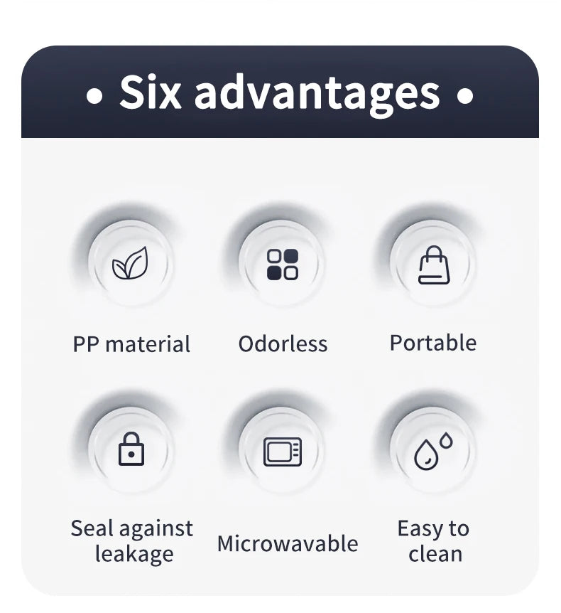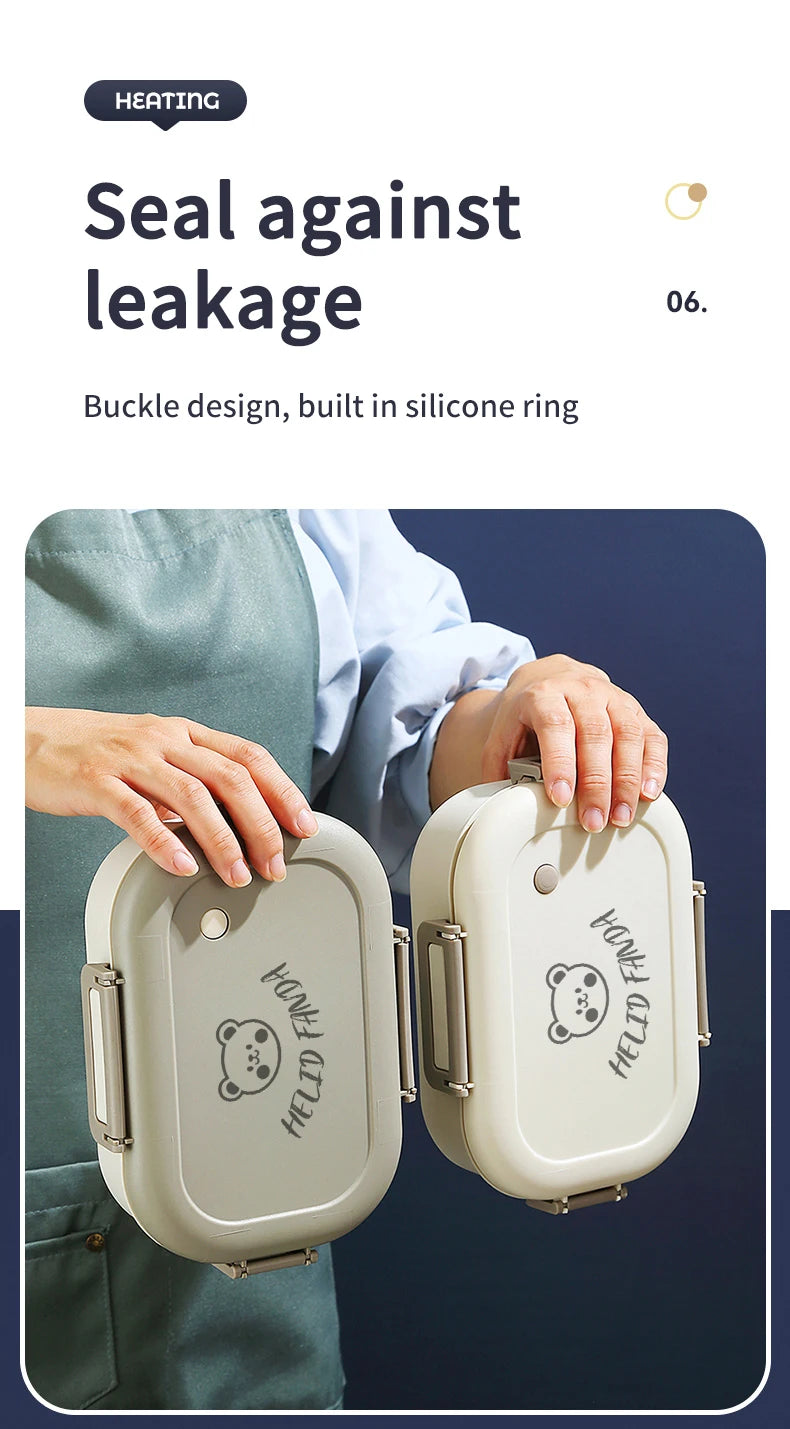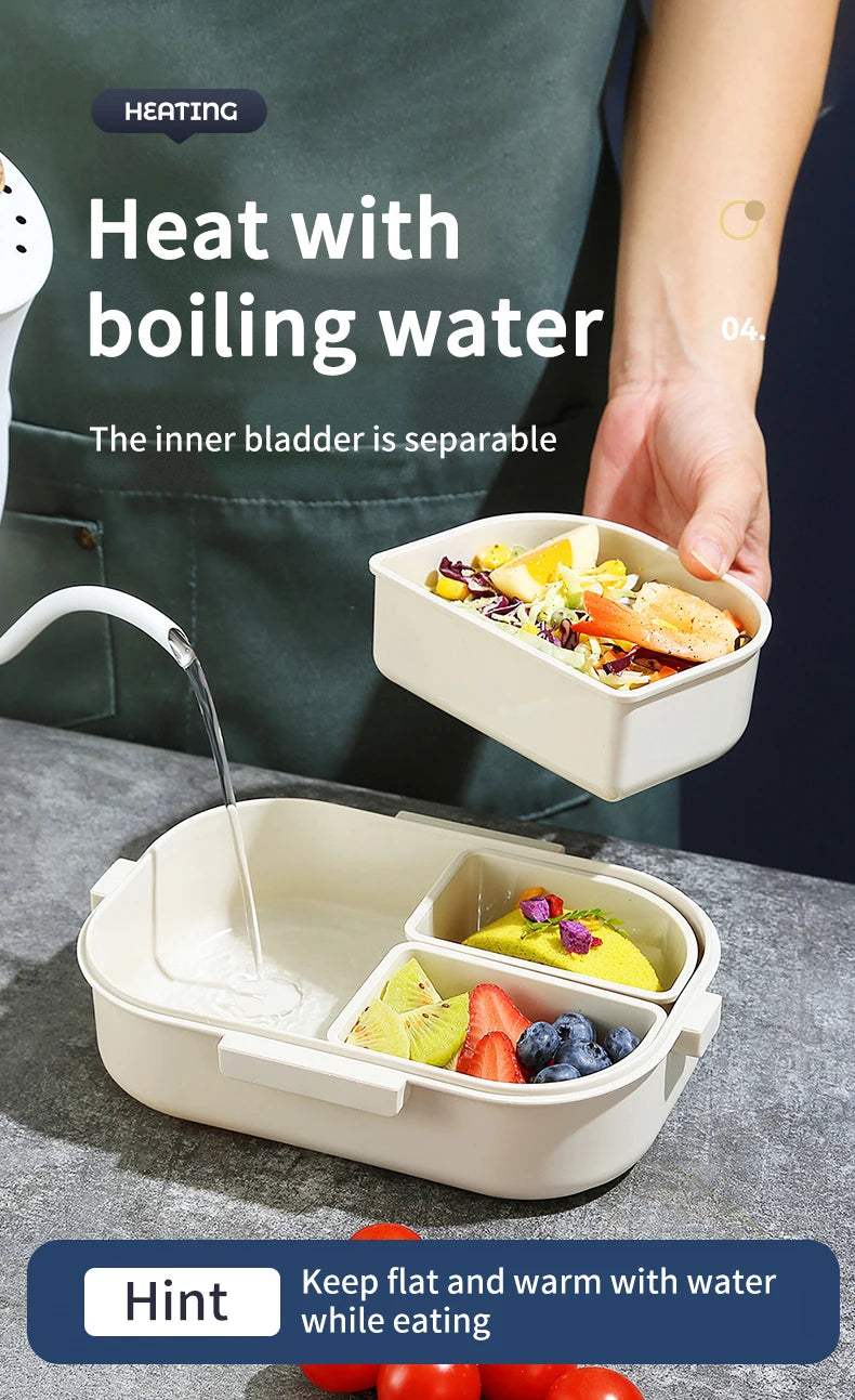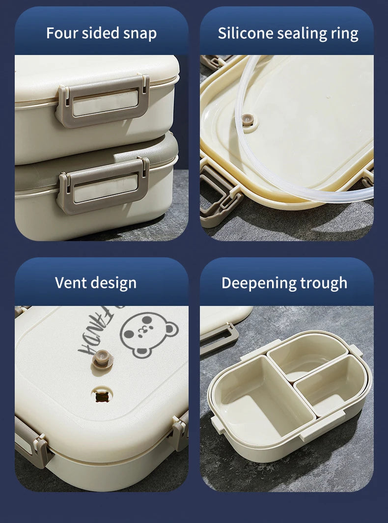 WORTHBUY Removable 3-Compartment Lunch Box 800ml Portable Plastic Bento Box Microwave School Student Kid Sealed Food Container